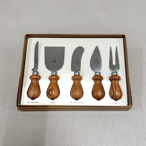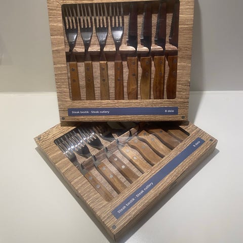 Sæt med 3 knive i rustfrit stål med træskaft.