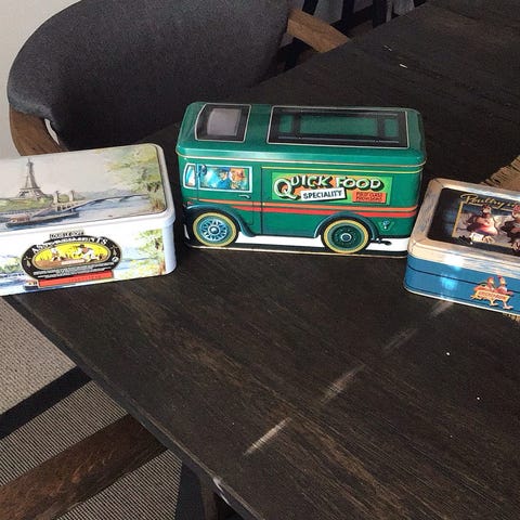 DEN STORE METALDÅSE MED DEKORATIONER, ER ET MUST, MED DE FLOTTE OG SJOVE DEKORATIONER PÅ ALLE SIDER.