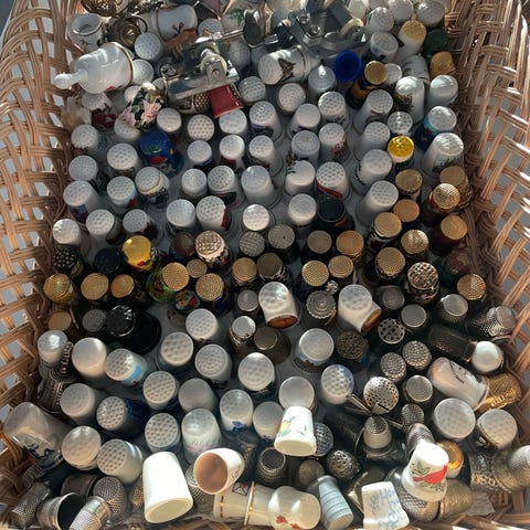 Meget gammel antik fingerbølsholder i sten til opbevaring af fingerbøl - i kvarts eller marmor.