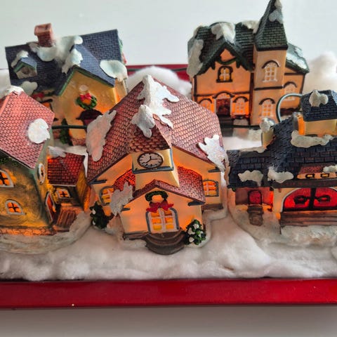 Juledekoration til lys, Nostalgic village. Ny og aldrig brugt. Højde 16 cm. Bredde 17 cm på den lange side og 14 cm. På den korte side.