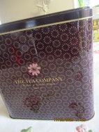 1 . STOR KVADRATISK METALDÅSE MED TEKST: "THE TEA COMPANY - TAKE A LITTLE TIME".