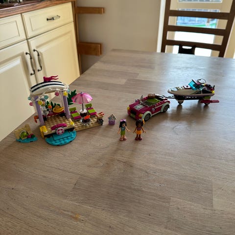 LEGO Friends strandsæt med byggevejledning og æske. Der mangler en avis, men ellers komplet.