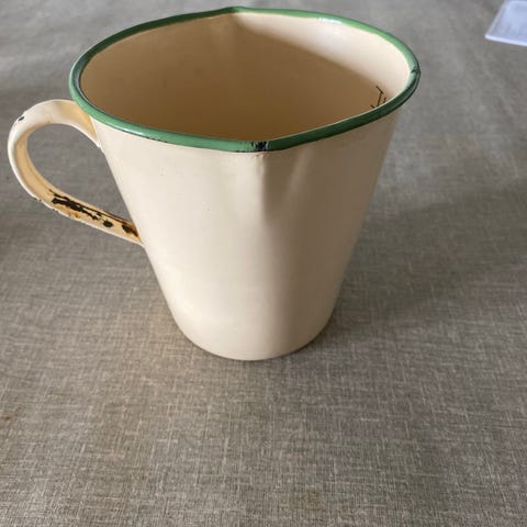 Målebæger, Glud & Marstrand, Madam creme målebæger 0,1 liter fra Glud og Marstrand. Der er brugsspor og afskalninger, og hanken er faldet af og haves ikke. Tænker en samler måske ville være interesseret.