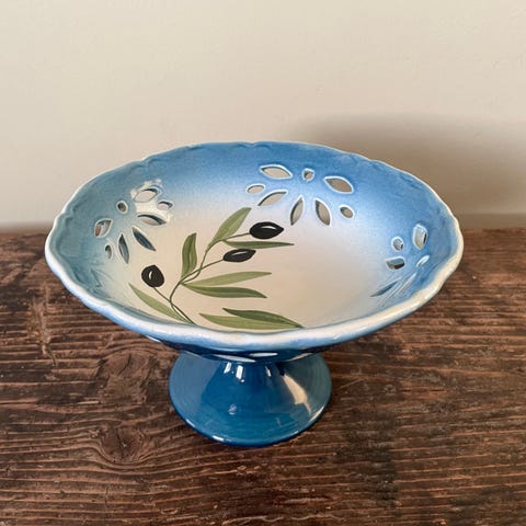Fajance, Opsats, skål, fad, Gammel, smuk og patineret, fransk opsats i cremefarve m/guldkant og mønster. Brug den til kage, frugt, ost, som slikskål eller blot til pynt. Kun fantasien sætter grænser.