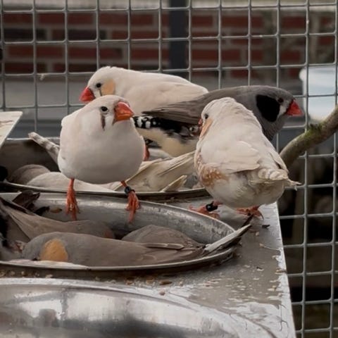 Zebrafinker hvide m/tegning, brune, grå og pingvinfarvet.Sælges fra 50,-kr. pr. par.