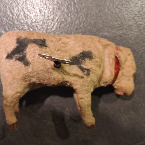 Porcelæn, Sjov ko, Højde 6,5 cm, længde 7,5 cm