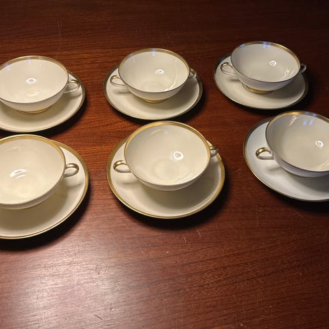 5 flotte kopper med dobbelt hank og guldkant.