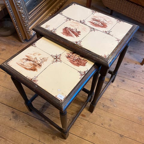 Indskudsbord, Gammelt indskudsbord i træ m. kakler.