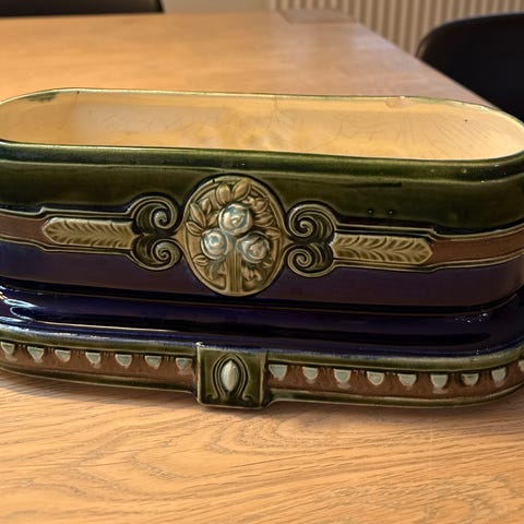 26 cm lang, 9 cm bred, 12 cm høj. Kasse 10