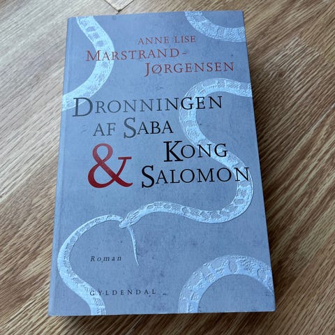 Dronningen af Saba & Kong Salomon, Anne Lise Marstrand-Jørgensen, genre: roman, Hæftet 1. udgave. Har været læst en gang. Har et enkelt knæk i ryggen, men er ellers i meget fin stand.