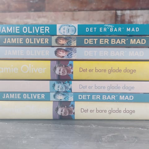 Kogebøger, Jamie Oliver, emne: mad og vin, Flere kogebøger med mad af Jamie Oliver. Står som nye. Fra røgfrit hjem.