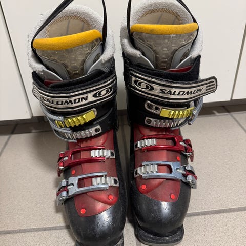 Lækker skistøvle fra Salomon stivhed 100 virker 100 procent. Brugt 5 sæsoner.