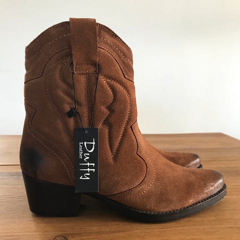 Lækker, helt ubrugt, cowboy støvlet i sort ruskind, str 38. Mærket er Selected Femme. Nypris kr 1099,95. Der er stadig prismærke på og original indpakning. Har aldrig brugt dem, da de er for små til mig (fejlkøb). De er uden for, og perfekt til forår/efterår, “kontorbrug” eller fest med casual look.