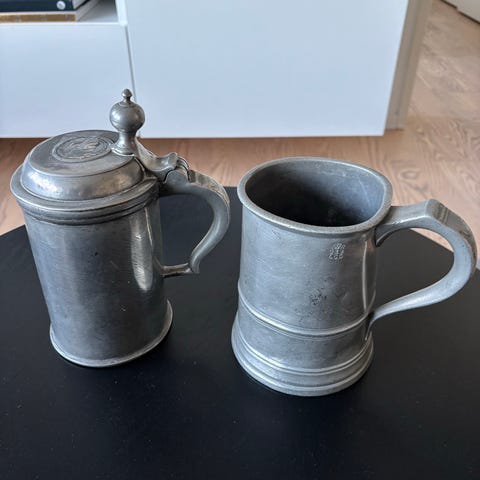Smukt gammelt PINT Ølkrus, forsølvet og med et hav af stempler, se billeder. Perfekt til øl