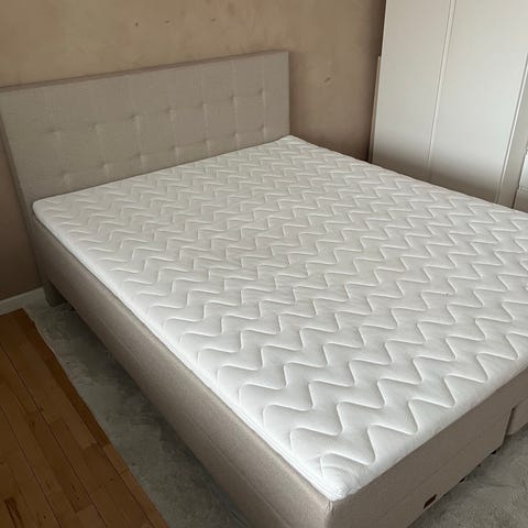 Der medfølger en helt ny ubrugt topmadras betræk med.