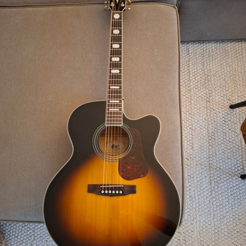 Lækker vellydende og velholdt Jumbo guitar med fishman pickup indbygget og case. Sendes ikke.