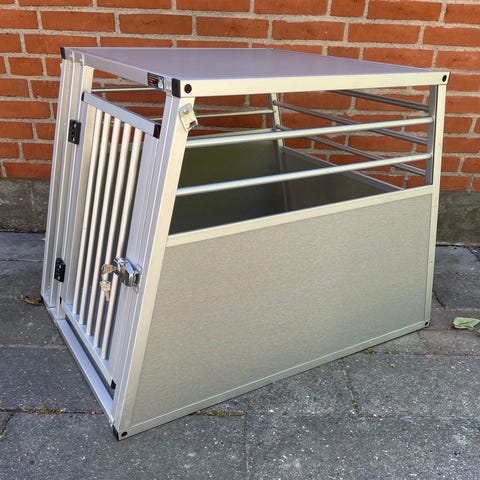 80 x 50 x 57 som nyt. Nemt at klappe op og tage med. Som nyt. Plads til labrador
