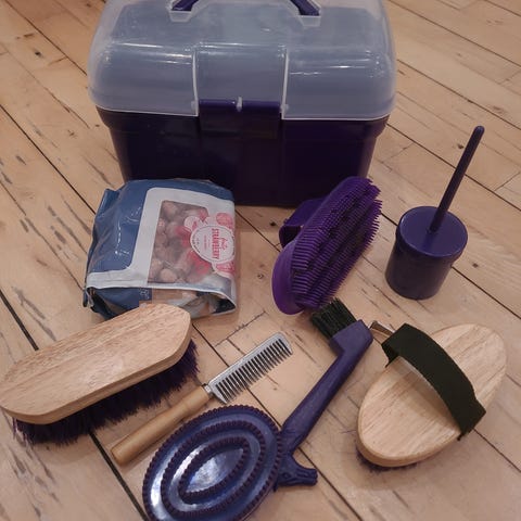 Vores datter er rykket videre fra sin heste-interesse og sælger derfor sin striglekasse inkl. strigler.