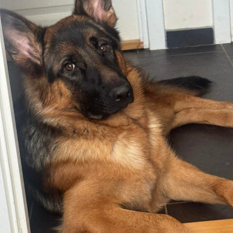 Chæferhund med halsbånd 300 kr.