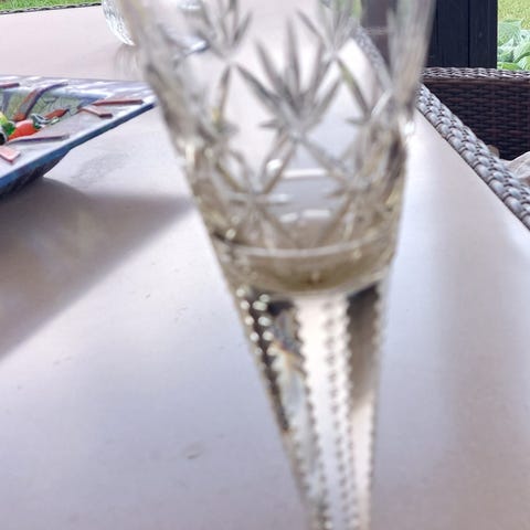 Pokalglas sælges. Højde 22 cm. Facetslebet øverst på stilken. Alder og oprindelse ukendt, men det er gammelt. Er i perfekt stand.