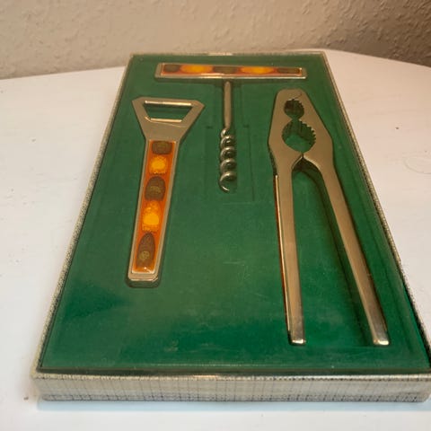 Gaveæske: Oplukker, proptrækker, istang i rustfri stål