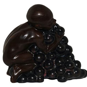 Bing & Grøndahl Stentøjsfigur : Dreng / Pan med druer , design Kai Nielsen ( 1882 - 1924 ), sælges.