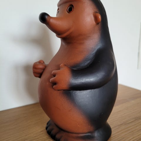 DAM sparegris. Uden nøgle. Fra Frøslev-Mollerup Sparekasse. 14 cm høj og 16 cm lang. Lige så fin som ny, da den har stået i samling.
