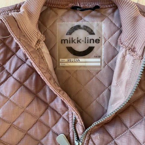 Termojakke og -bukser i lys lilla. Ingen huller, men nogle af syningerne i det slidforstærkende bag på bukserne er gået. Kan nemt fikses, hvis man er ferm med nål og tråd.