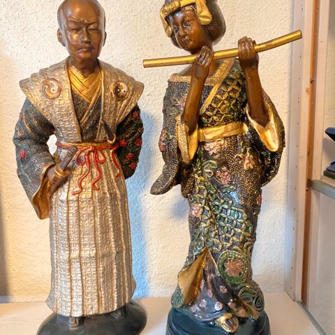Vintage japansk geisha figur i med fløjte, siddende
