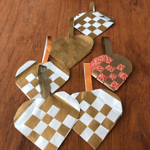 14 fine guld hjerter brugt til dekoration ved fest. Flotte og anderledes. Vi satte dem i blomsterdekorationer midt på bordet. Det var virkeligt flot. De er lavet af Porcelæn, plaster m.m. Ingen plastik!!! Sælges kun samlet. Sender gerne.