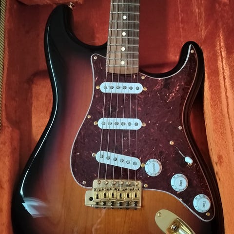 Sælger fender startocaster, der er lavet i samarbejde med guitaristen Tom Morello. jeg for den ikke brugt nok. Den er klar til ny ejer der forhåbentlig kan nyde denne fantastiske guitar.