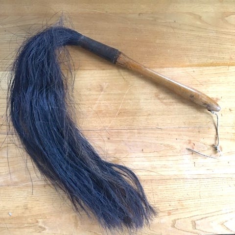 Stort antikt/ vintage flueskab i fransk landstil med en enkelt hylde og fluenet i metal.