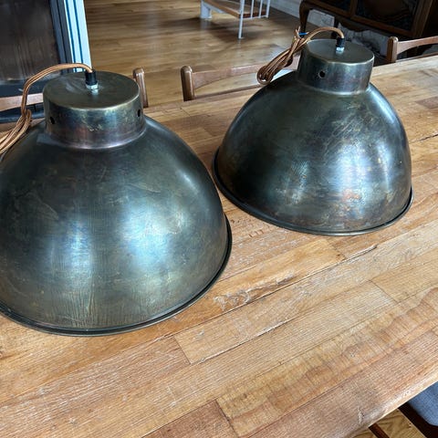 Har 3 stk pendler med lampehus i massiv poleret aluminium med kraftigt slagfast glasskærm. Ny pris før 1800kr/stk nu 1000kr. Alle 3 2500kr