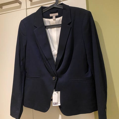 Mørkeblå figursyet blazer fra H&M i størrelse M.