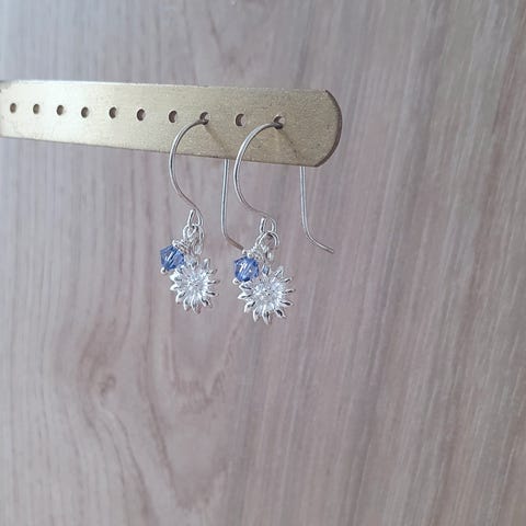 Smukke øreringe i sterling sølv fra Dige Designs, som er dekoreret med glimtende lilla Swarov.. krystaller. Øreringene er 2,5 cm lange og nikkelfri. Helt nye og fin gaveindpakning medfølger.