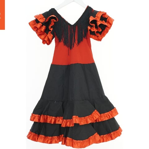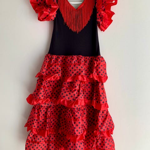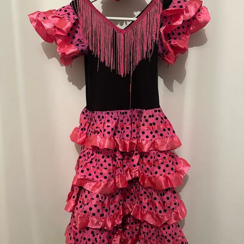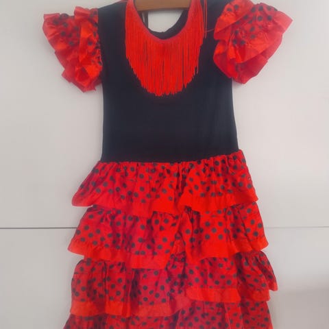 Spansk kjole med vifte og hårklemme str 10 år som ny
