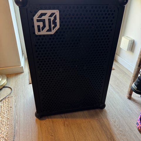 Sælger min soundboks som jeg købte på Kickstarter da de lancerede den for første gang. Den har kun været ejet af mig siden og alt virker på den, dog kan volume knappen dreje hele vejen rundt, men det er også det eneste.