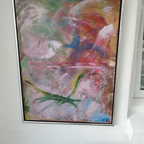 Andet, Karin Guje, motiv: Landskab, h: 210 b: 100, Smukt silkemaleri af Karin Guje, nypris 1500 kr, fra hjem uden røg eller dyr. Kan vaskes forsigtigt. Mål: 210 højt x 100 cm bredt (inkl ophængspind).