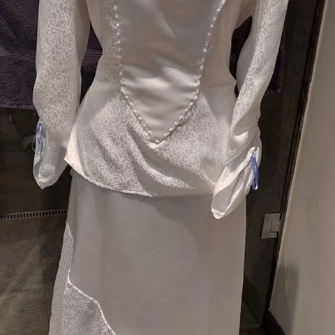 Skræddersyet top samt tilhørende blonde top med lange ærmer og silkebånd. Flot til fest og konfirmation, som det blev syet til vores datters konfirmation