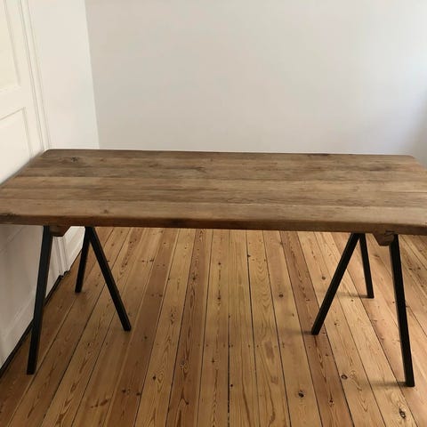 Bordet er 90x220 og 74 cm højt. Tillægsplade på 50 cm.