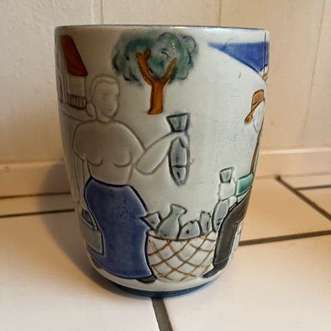 Er i 2.sort pga indvendig brændingsrevne og lidt glasurfejl hist og pist, men stadig en flot vase.