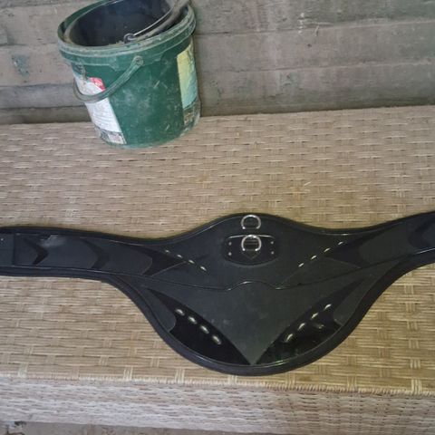 Velholdt, men brugt sort pladegjord sælges, 130 cm blødt læder på indersiden af gjorden. Næsebånd med dobbelt, sort, str full, brugt x 2 100,- + fragt.