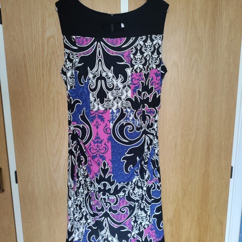 Etuikjole, Joseph Ribkoff. Sort, grå, råhvid, Næsten som ny, str 44, uden ærmer, lynlås i ryggen, strækbart materiale. Flot kjole.