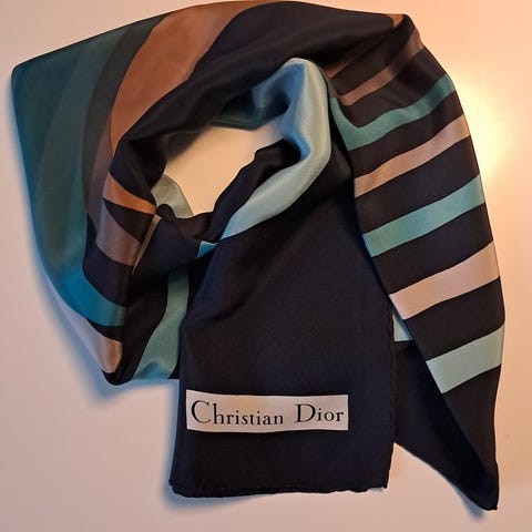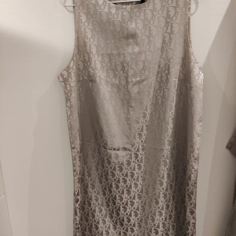 Original Christian Dior kjole. Slank model. Desværre blevet for lille om hoften. Nypris kr. 20-25.000 for en Christian Dior kjole. Sygning er gået op ca. 1 cm ved kjoleslidsen bagpå (se sidste billede).