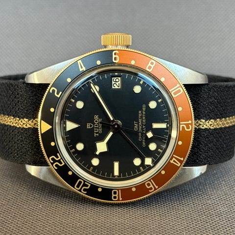 "Nyklassiker" fra Tudor. Deres bud på en GMT fra 2018, som blevet taget godt imod verden over. Uret er fra slut 2020, og er så nyt, at det ikke har dato fejlen, som de føste modeller havde. Desuden har det været til 2 års tjek slut 2022 hos Klarlund, hvor uret også er købt. Alt tilbehør medfølger + 2 ekstra remme. En gummi rem og en nato rem. Brugt i rotation med andre ure, og har kun de uungåelige hairlines.