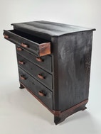Upcyclet kommode i brændt fyrretræ. Grundet med epoxy enkelte steder og efterbehandlet med linolie og bivoks.