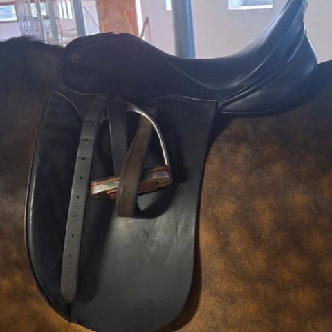 Dressursadel Comfort, størrelse 17,5 44cm fra Waldhausen. Den er i god stand, er kun halvanden år gammelt. Stigebøjle og saddel overtræk medfølger