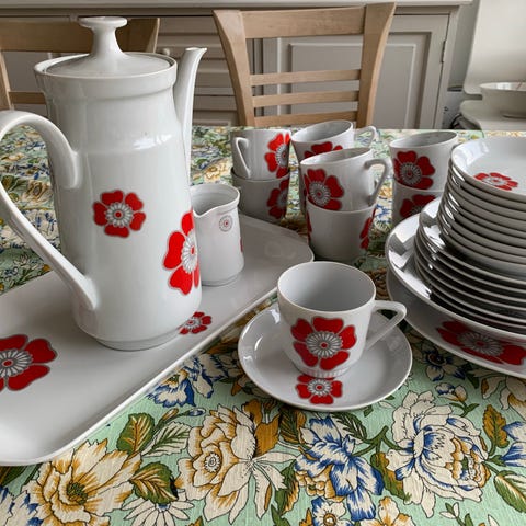 Porcelæn, Kaffestel til 12 personer, Karlskrona svensk design, Kostbart kaffestel fra 1940