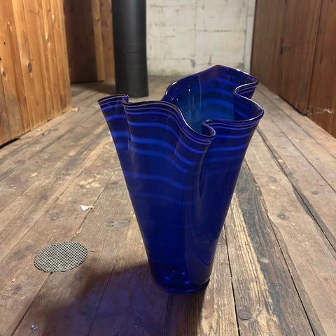 Gammel vase fra oldemors tid med smukt mønster. Yder rigtig god støtte til buketten. Højde 16,5 cm. Diameter top 12,5 cm og bund 9,5 cm.