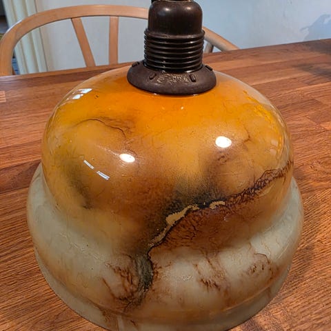 Vintage pendel - marmoreret/opaliseret glas- nok ca 1930-'ish'